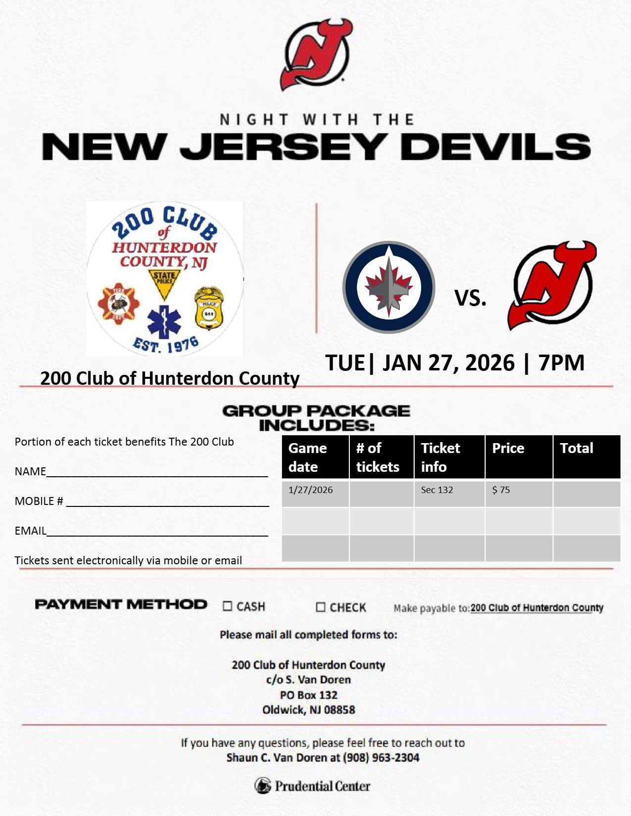 Devils Game – January 27, 2026 Due date is January 6 200 Club of Hunterdon County12.2025News 200 Club of Hunterdon CountyDevils Game – January 27, 2026 Due date is January 612.03.2025